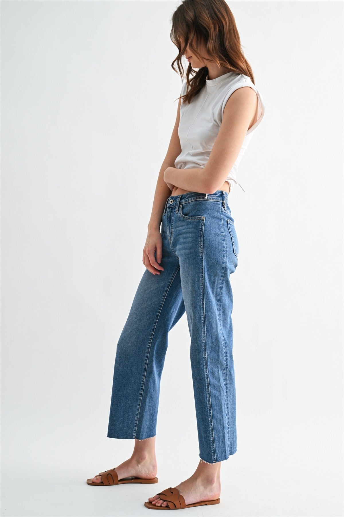 Claire Mica Mid Rise Straight Jeans- Blue Chill
