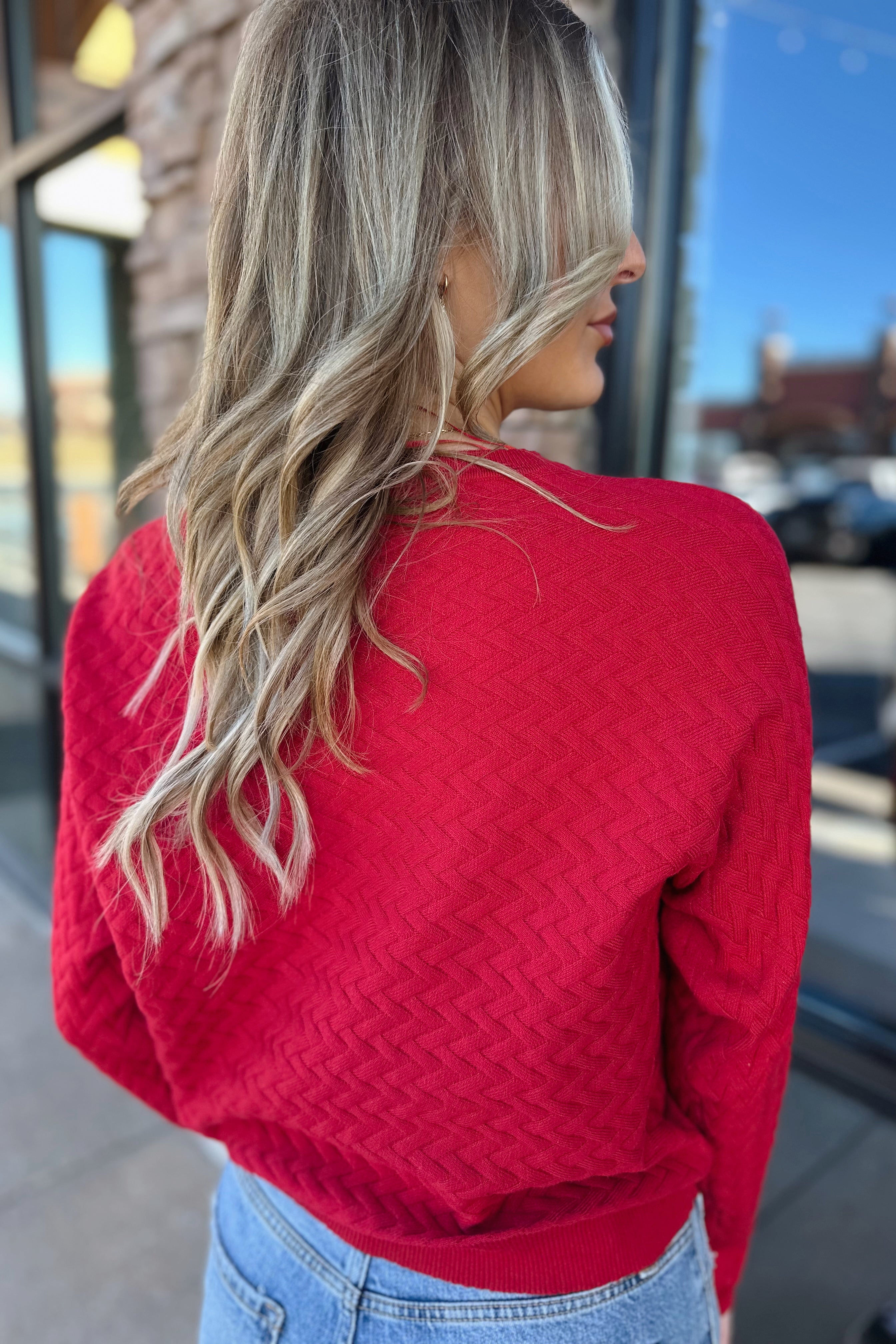 Mila Herringbone Sweater Red